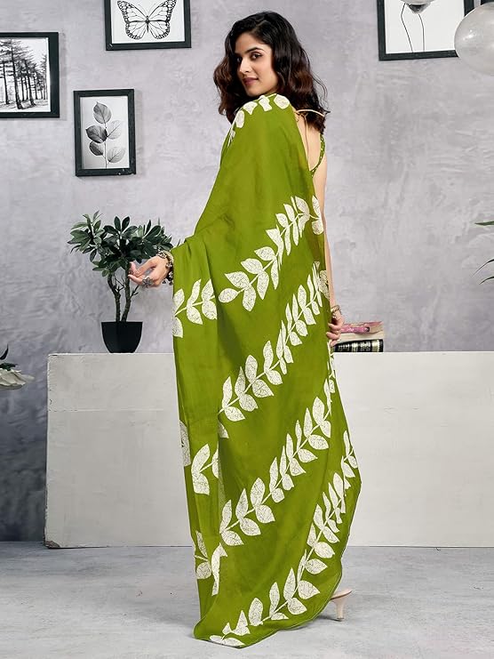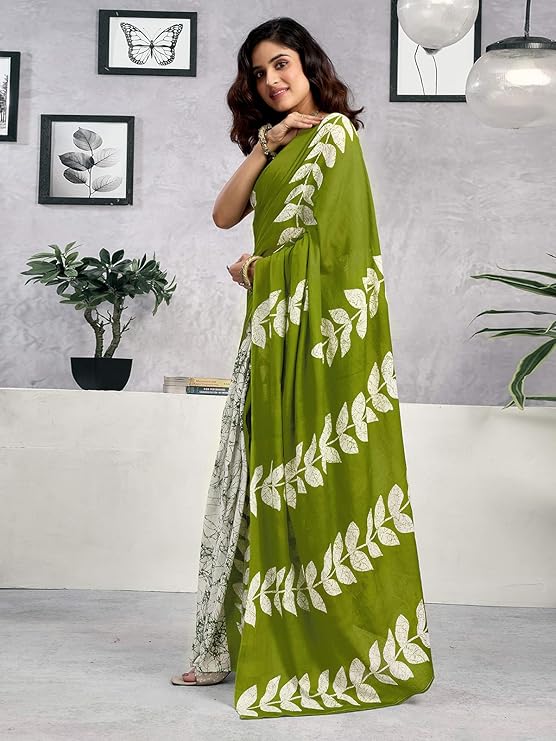 - Color :: Saree Color : Green || Blouse Color : Green & White || Disclaimer : Colour Of The Actual Product May Slightly Vary Due To Different Photographic Lighting Sources Or Your Display Color Settings Or Screen Type.